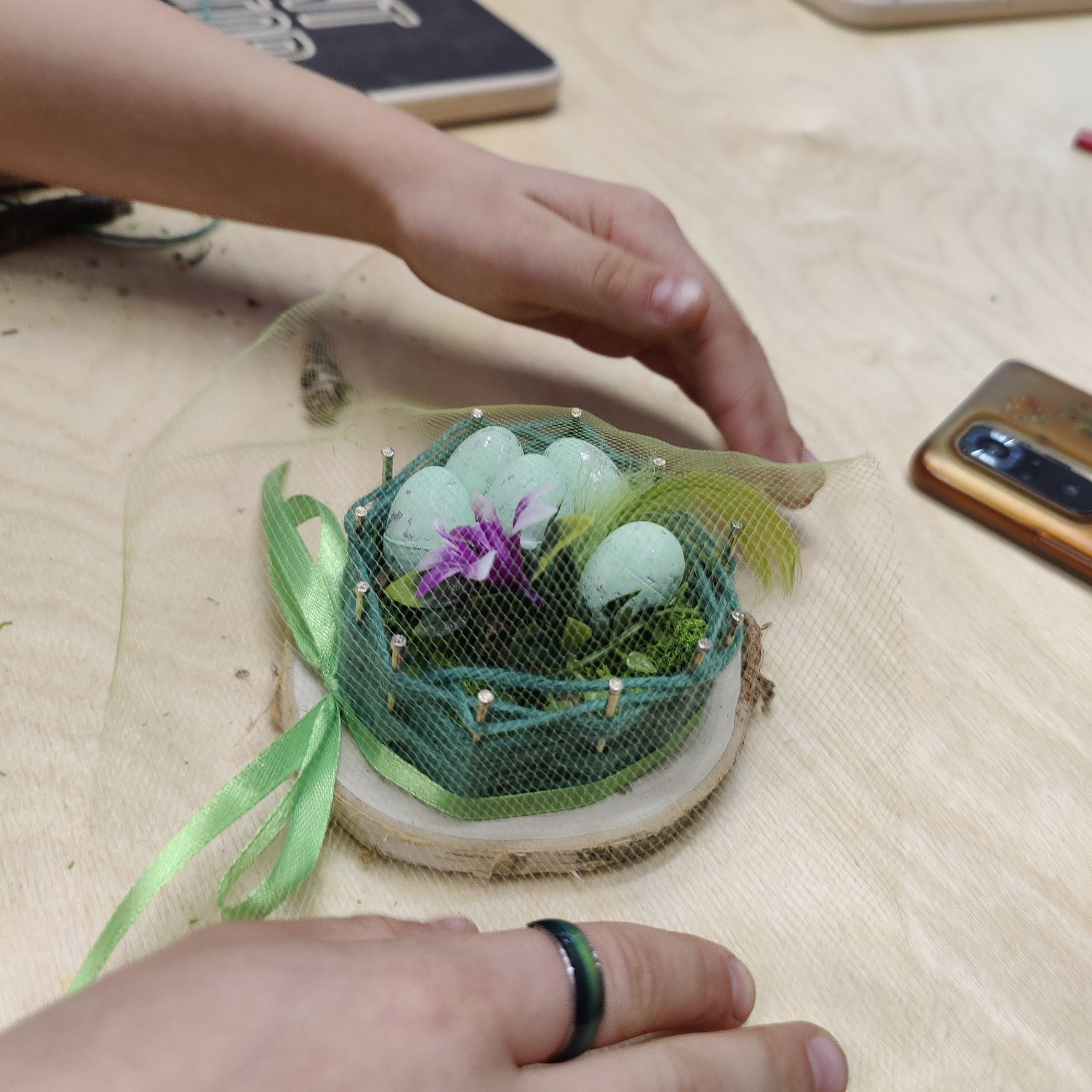 Podczas warsztatów stworzymy wyjątkowe gniazdko – wyplatane wokół gwoździków wbitych w plaster drewna, z miękkich gałązek lub kolorowej włóczki.